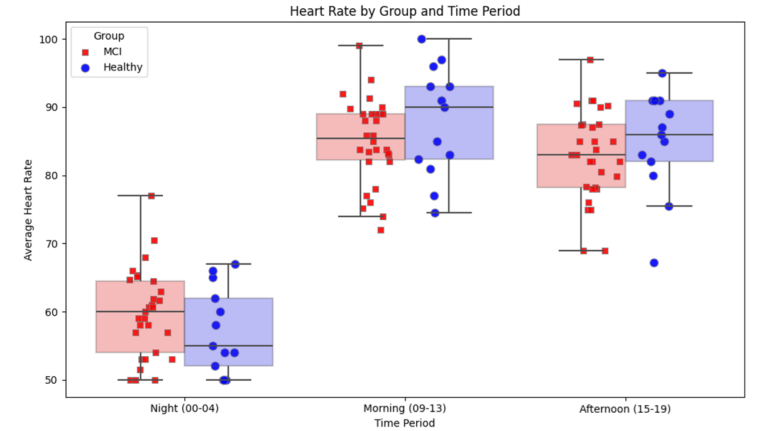 Materiali. Per rilevare la dinamica autonomica individuale, i valori di HR sono stati mediati su base oraria per sette giorni. Per ciascun partecipante, sono stati calcolati indici di variabilità di HR come la differenza tra la frequenza cardiaca di picco durante il giorno (mattina: 09:00–13:00; pomeriggio: 15:00–19:00) e quella minima durante la notte (00:00–04:00). I confronti tra i gruppi (HC vs. MCI) sono stati effettuati tramite modelli di regressione lineare aggiustati per età, sesso e istruzione. Per ridurre l’influenza dei valori anomali, i dati di HR sono stati winsorizzati al 5° e 95° percentile per ciascun gruppo. Le associazioni tra indici di HR e prestazioni cognitive sono state valutate tramite correlazioni di Pearson, Spearman e Kendall, con ulteriori correlazioni parziali, controllando per le variabili demografiche. Le visualizzazioni includevano indicatori specifici per ciascun gruppo e linee di regressione per illustrare l’associazione tra variazioni di HR e prestazioni cognitive sull’intero campione.